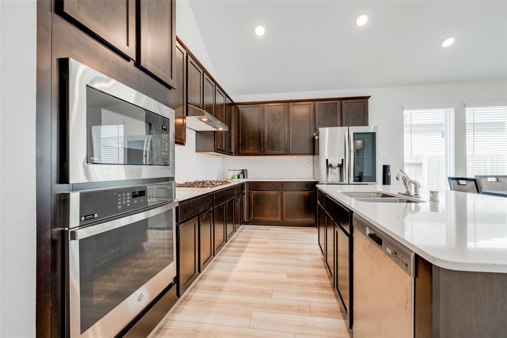 Experience love at first sight with this stunning home in Marvida. This open concept home features soaring ceilings, luxury engineered plank flooring, and spacious living room that's an exceptional entertainment space, this home is sure to impress! The kitchen is equipped with gorgeous quarts countertops and Energy Star appliances. Step outside to a covered patio +enjoy the spacious yard w/SPRINKLER SYSTEM. Upgraded Garage floor epoxy coating added, and all window treatments ..over 10K in upgrades! As a resident of Marvida, you'll have access to an array of amenities including clubhouses, pools, playgrounds, tennis courts, splash parks, basketball courts, and dog parks. Conveniently located near the Grand Parkway and Highway 290, commuting to the energy corridor, Houston Premier Outlets, and dntwn entertainment is a breeze. Plus, this home is in the highly acclaimed Cypress/Fairbanks ISD. Seller is offering 10K towards buying down the rate with a strong offer received by 5/5/2024.