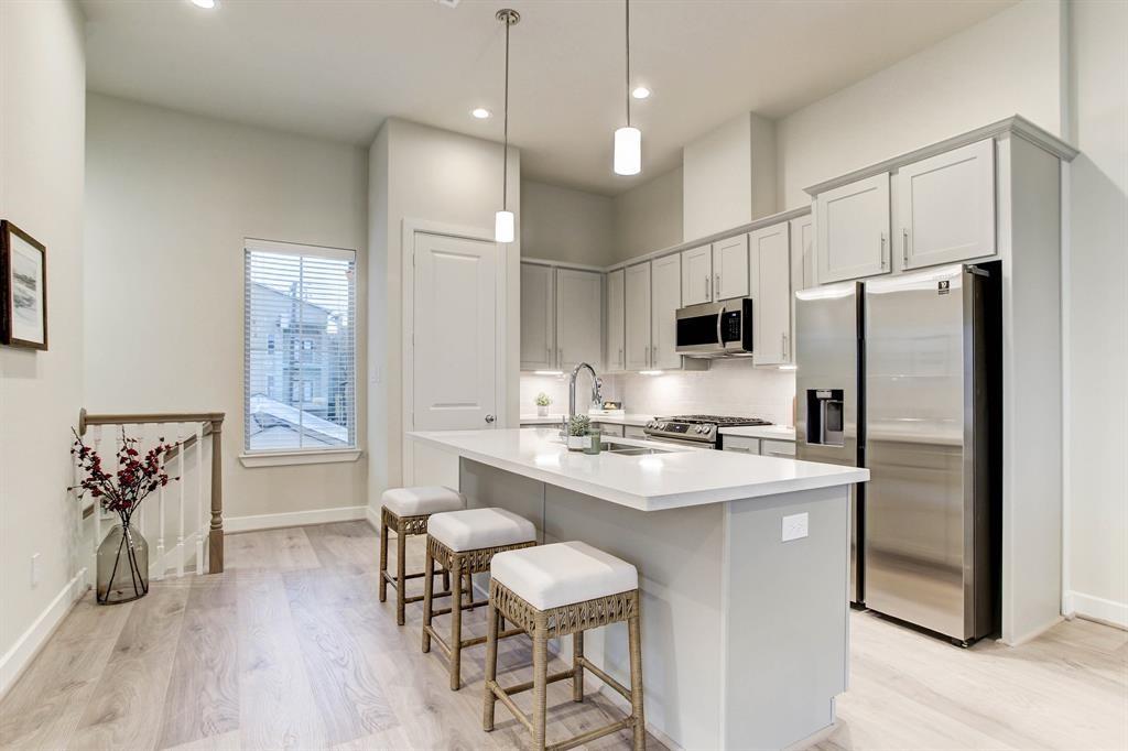 Fantastic Rice Military/Woodcrest lease within walking distance of Washington Ave. Built in 2020- spacious open floor plan, high ceilings, wide plank grey stained floors, and good closet space through out. Large living room opens to the kitchen that includes quartz counters, gas range, and plenty of prep space. All appliances included. Small community of homes; gated driveway. First Floor bedroom is good sized.All bedrooms have ensuite baths. Beautiful primary with free standing soaking tub, separate shower, and double vanities. Nice views out the many windows. Minutes to Memorial park, downtown, and I-10. Available Nov 28.